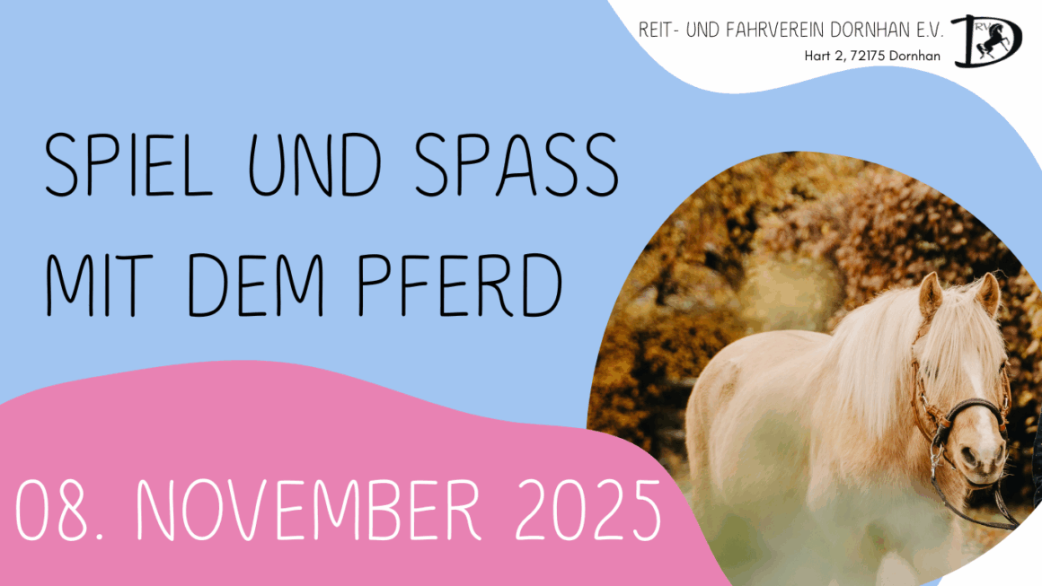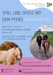 Am Samstag, den 08. November 2025 findet unser Kinderprogramm „Spiel und Spaß mit dem Pferd“ statt.